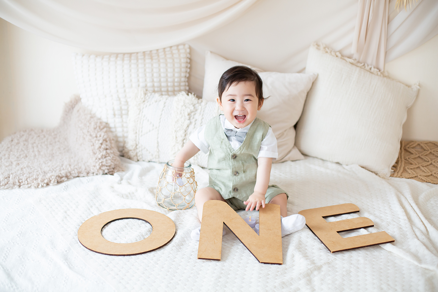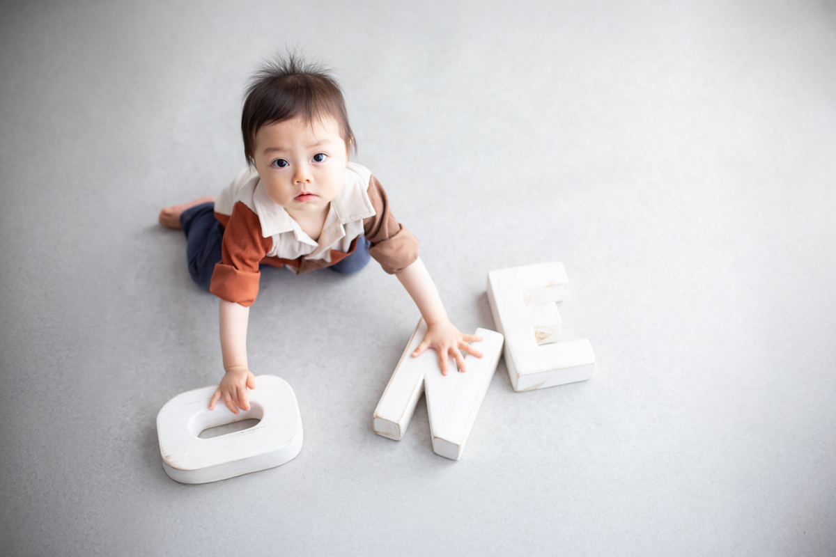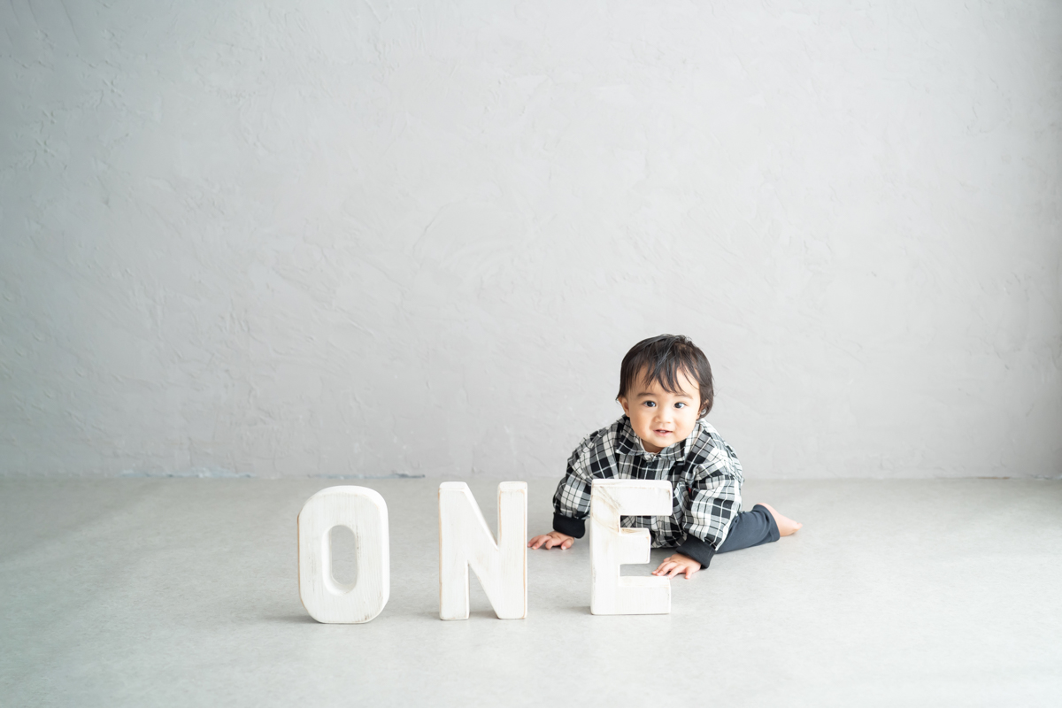 大阪お誕生日撮影|吹田の1日2組限定プライベートフォトスタジオで残す、バースデーフォト|1歳男の子ONEオブジェ
