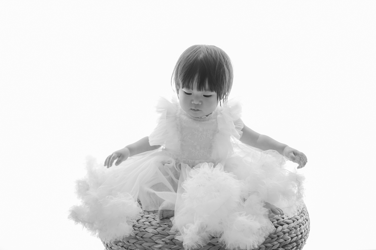大阪お誕生日撮影|吹田の1日2組限定プライベートフォトスタジオで残す、バースデーフォト|1歳女の子モノクロ
