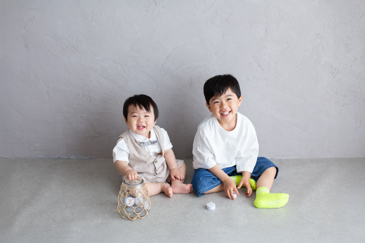 大阪お誕生日撮影|吹田の1日2組限定プライベートフォトスタジオで残す、バースデーフォト|1歳男の子とお兄ちゃん|兄弟フォト追加料金なし