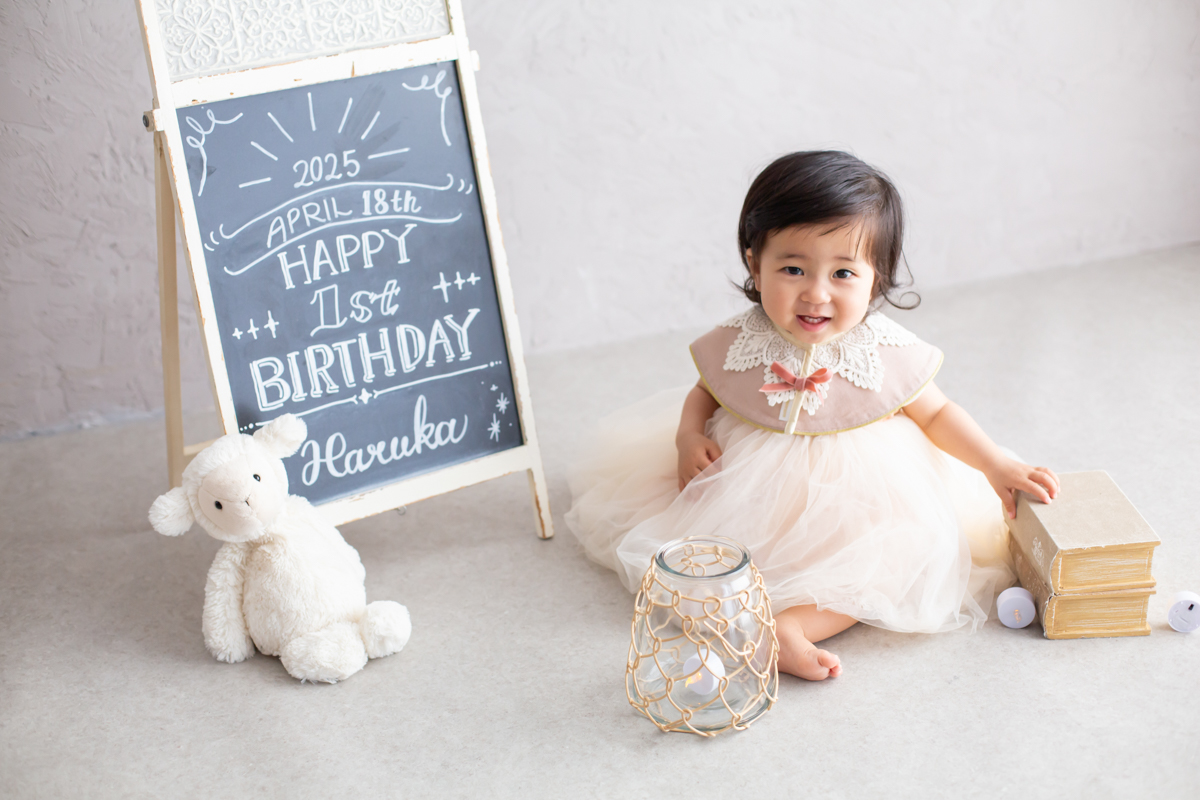 大阪お誕生日撮影|吹田の1日2組限定プライベートフォトスタジオで残す、バースデーフォト|1歳女の子選び取り