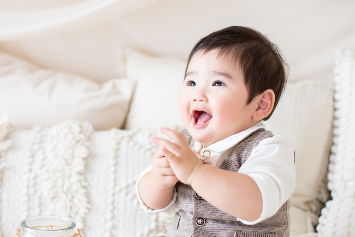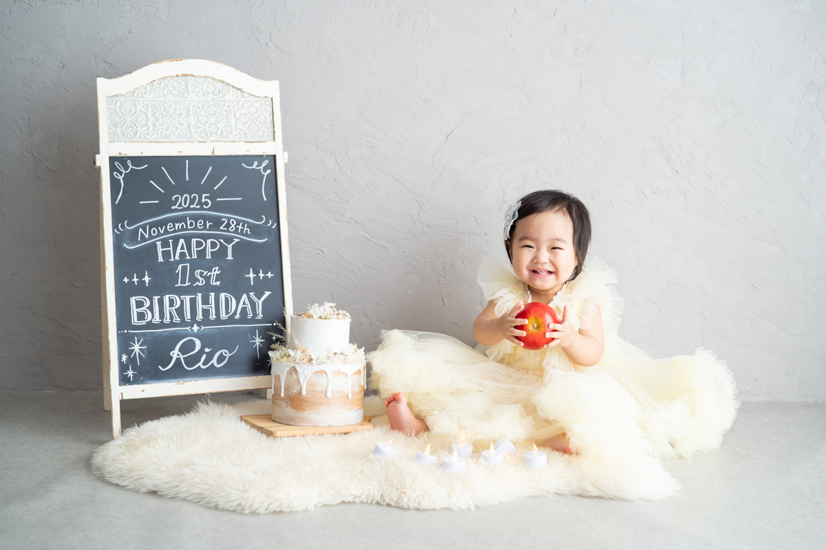笑顔の1歳バースデーフォト(豊中市のフォトスタジオ)