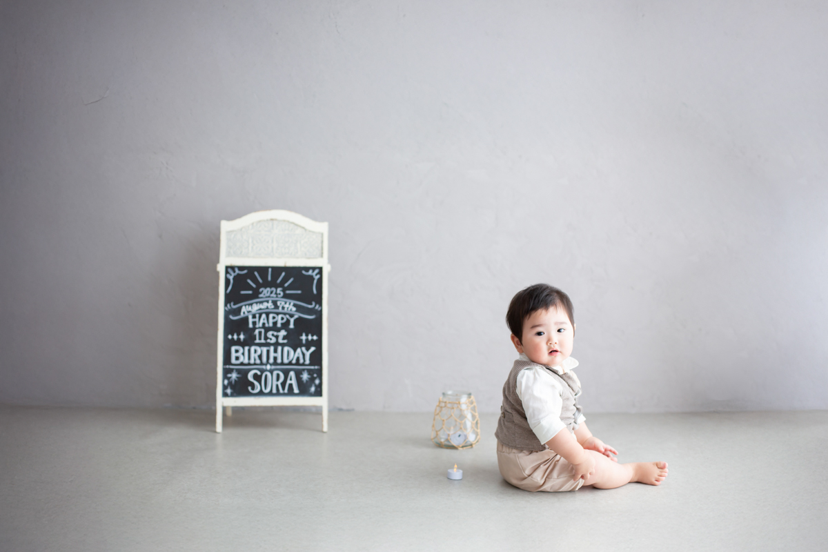 大阪お誕生日撮影|吹田の1日2組限定プライベートフォトスタジオで残す、バースデーフォト|1歳男の子選び取り