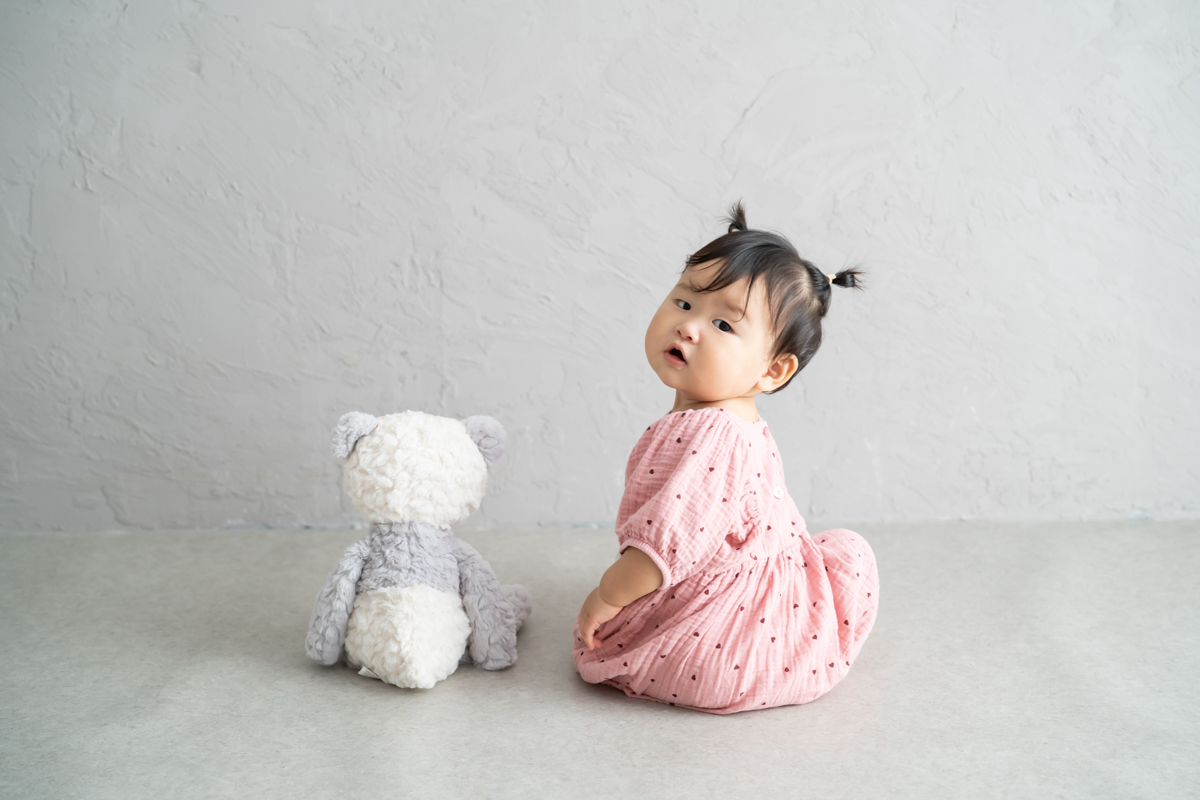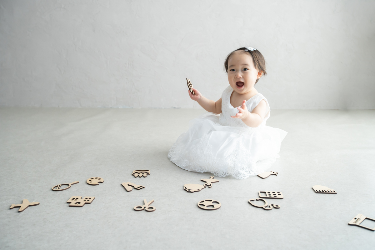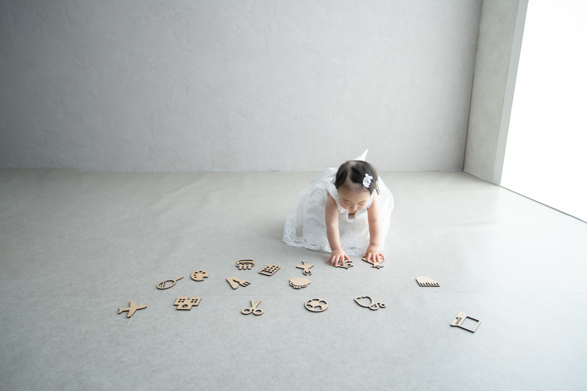 大阪お誕生日撮影|吹田の1日2組限定プライベートフォトスタジオで残す、バースデーフォト|1歳女の子とファーストトイ