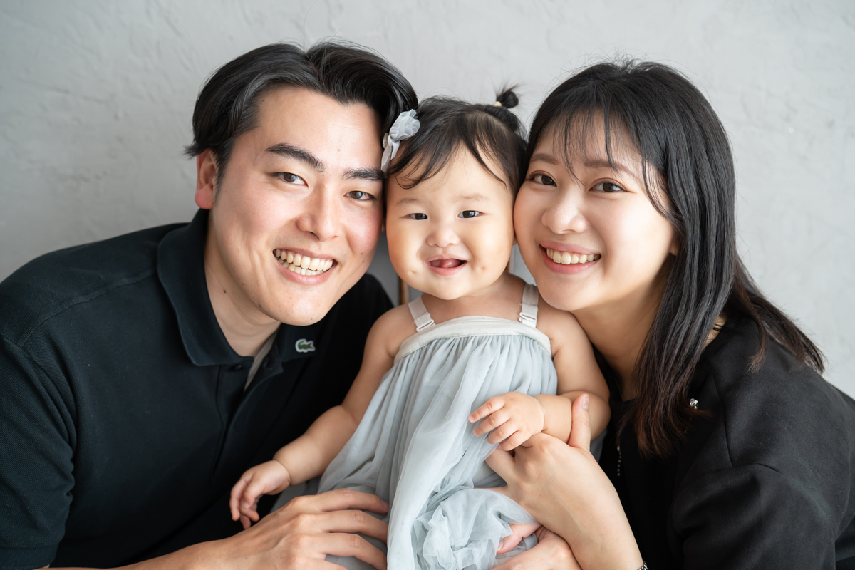大阪お誕生日撮影|吹田の1日2組限定プライベートフォトスタジオで残す、バースデーフォト|1歳女の子パパとママ